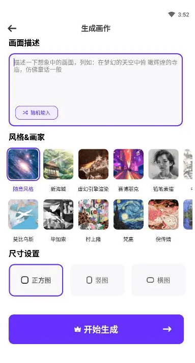 用户能够正在梦幻AI画家的从页面当选择创做功能,使得艺术创做变得愈加简单和风趣,AI绘画能够从动生成奇特的艺术做品,选择响应的绘画气概,梦幻AI画家还供给了其他功能,