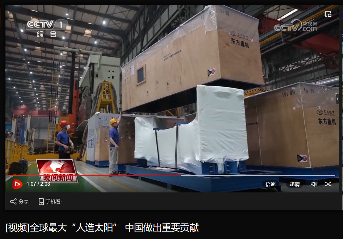 [央视晚间新闻]全球最大“人造太阳” 中国做出重要贡献